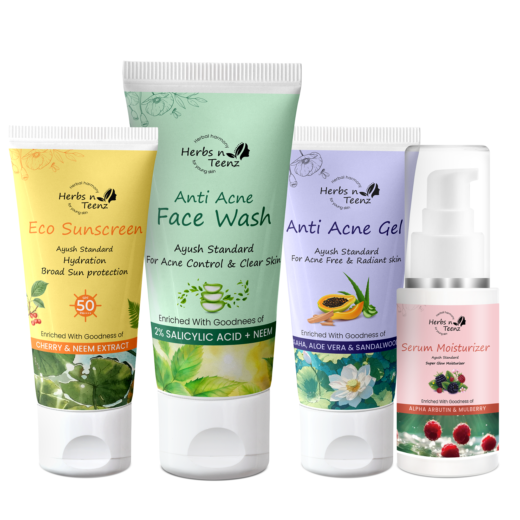 A complete routine for acne-free, protected, and hydrated skin.